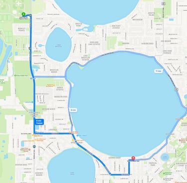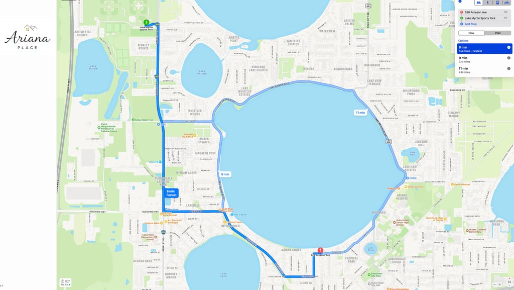 Ariana Place Lakefront Airbnb is only 3.4 miles from the Lake Myrtle Sports Complex on beautiful Lake Ariana.